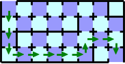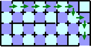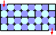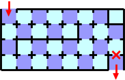 The first line of a dataset contains two integer numbers, the height h and the width w of the rectangular maze, in this order. You may assume that 2 ≤ h, w ≤ 30.