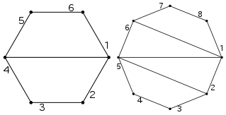 ACM 国は正 n 角形の島国である. n 個の角に港があり,ある角の港から時計回りに 1 から n までの番号が順番に付いている. 港は点とみなす.